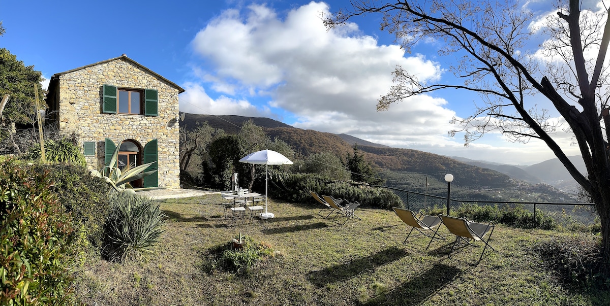 L'appartamento si trova in un rustico sito in posizione panoramica affacciato verso il mare e la città di Imperia. Gode di una posizione invidiabile, tra le più panoramiche del ponente ligure, con una vista che spazia dai monti fino al mare. Trattasi di ampio monolocale confortevolmente arredato dotato di angolo cottura e bagno privato capace di ospitare fino a 4 persone. Un grande giardino attrezzato con bbq, sdraio e lettini di oltre 250 mq con vista sul mare a fondovalle è a disposizione.