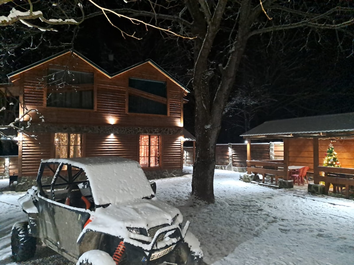 歡迎來到我們令人驚嘆的獨立房源,擁有迷人的涼亭、涼爽的室內裝潢和茂密的綠色植物。享受騎馬、越野車和吉普車之旅。房東熱情好客,精通英文和喬治亞語。充滿活力的街區,有友好的當地人和遊客。立即預訂,享受難忘的住宿體驗!