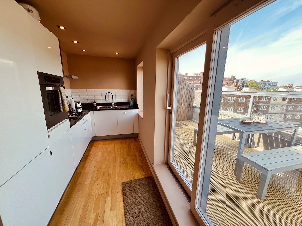 頂樓公寓。利物浦街區1區。屋頂露台和空調