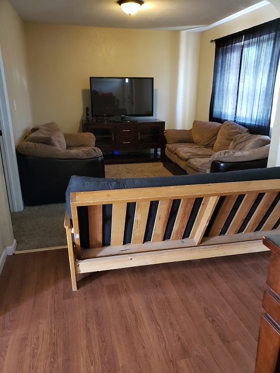 Quiet neighborhood located in Pueblo West. Sits real close to our house. This is a very small, but newly renovated tiny house! 12' x 16' one room, queen bed, nice size shower and toilet with barn door for privacy in bathroom. Sit-up bar with two stools, smart TV with electric fireplace in the corner gives it a touch of romance! Loveseat with ottoman. Small loft that kids could sleep in for short stays. Small coffee pot, under counter fridge, and nice size mirror over farm sink.