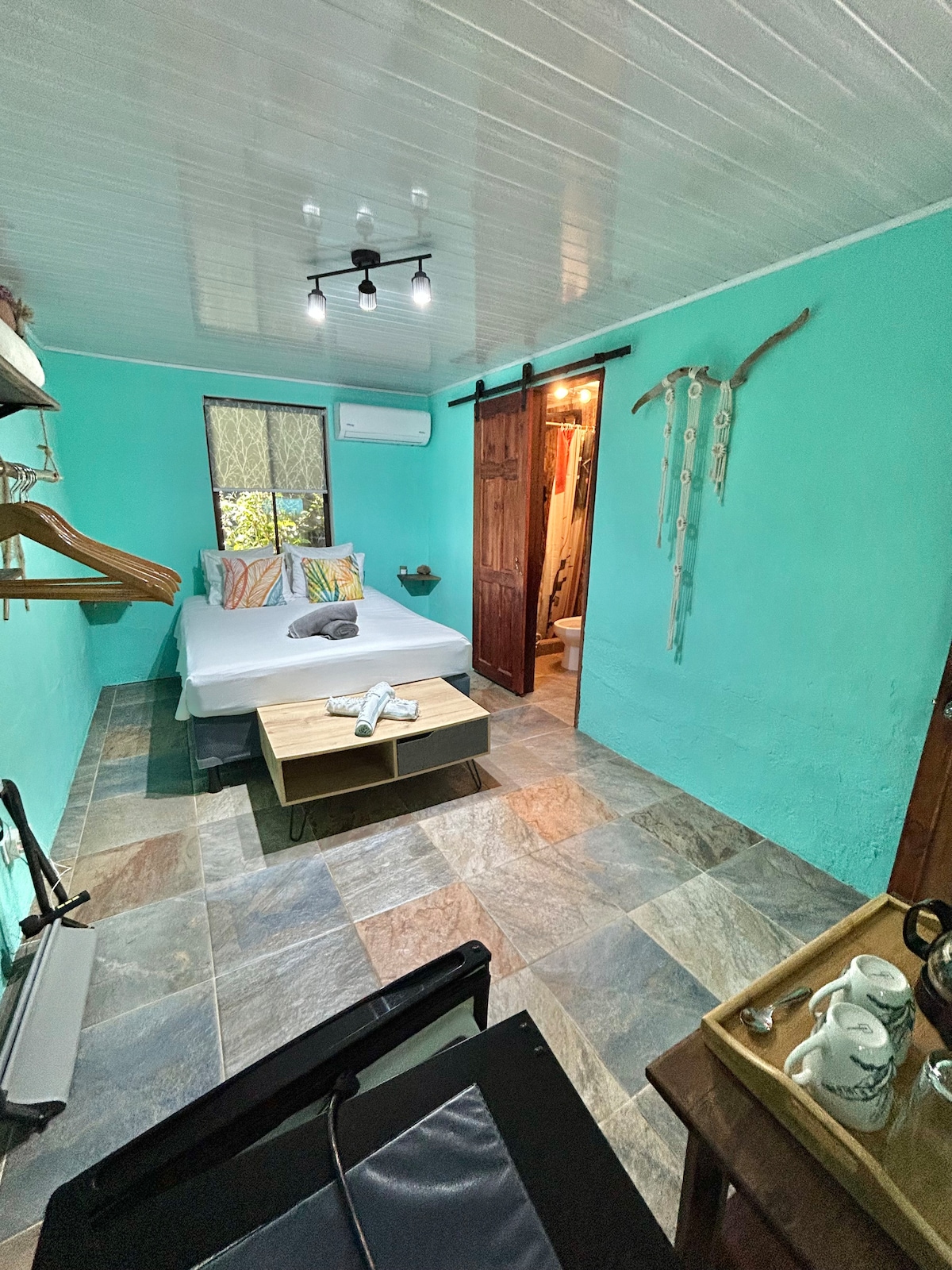 Private Room in a Shared Boutique Villa – Breakfast Included This cozy room features handcrafted Caribbean details and a comfortable queen bed with crisp linens. Designed for natural airflow, the space feels fresh and relaxing. Each room includes clothing storage and a personal safe box. Surrounded by tropical gardens, guests may enjoy gentle sounds of nature. The villa hosts a maximum of 12 guests, with 3.5 shared bathrooms, two outdoor showers, a pool, gardens, and an open-air yoga shala.