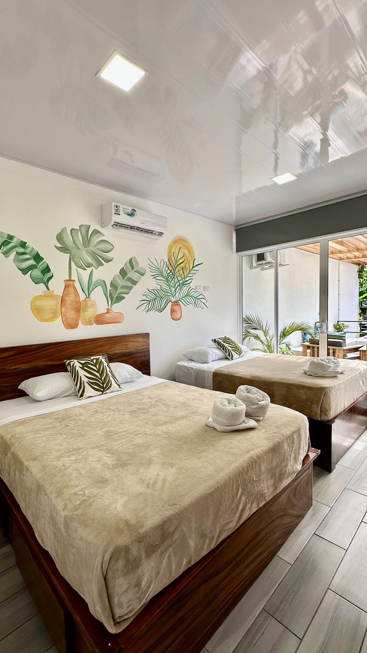 Just 5 minutes from downtown Guápiles, Caribe Loft #1, offers space for 4 people in a modern and elegant setting. The loft features a fully equipped kitchen, a comfortable living room, laundry service parking for a small vehicle, and two bedrooms. With high-speed Wi-Fi and air conditioning, it’s ideal for relaxing after exploring the city or the Costa Rican Caribbean. Close to shops, restaurants, and services, it’s the perfect starting point for your stay.