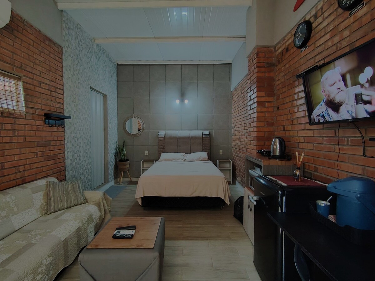 Este lugar único tiene su propio estilo. Este departamento cuenta con un dormitorio con amplio vestidor con cama matrimonial, un sofá cama y un baño, comedor para cuatro personas, área de cocina equipada, un estar diario y un amplio espacio exterior. Incluye WiFi, Smart Tv con cable, aire acondicionado (en habitacion y estar diario) y una cochera. Espacios comunes Dos quinchos climatizados con parrilla Laundry Piscina Portero 24 hs