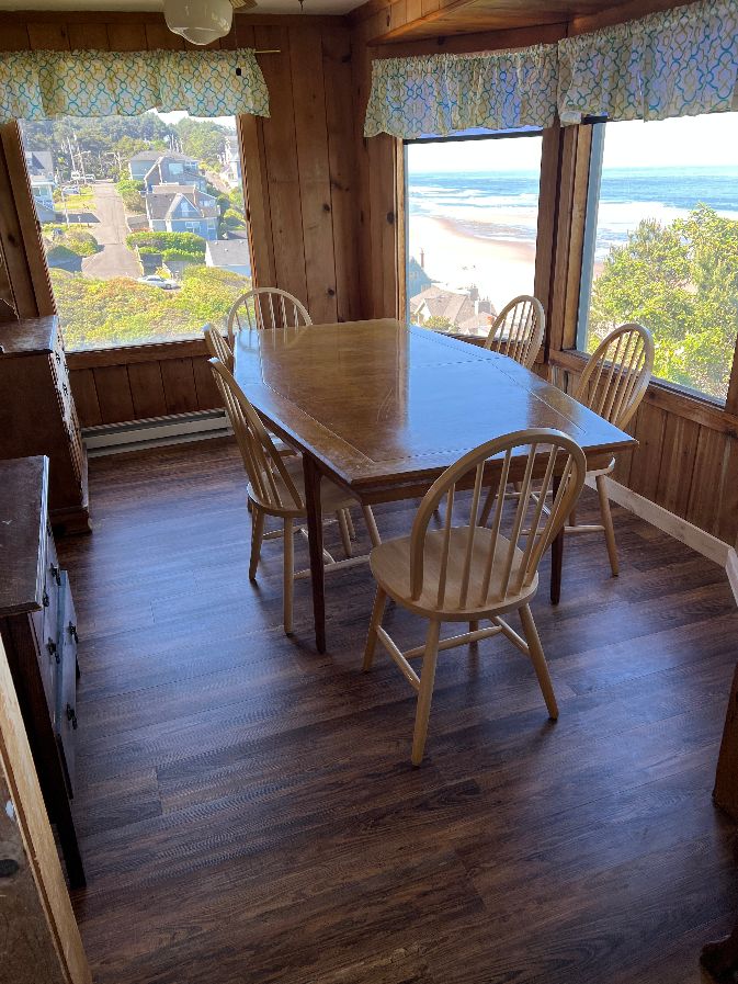 Ocean Terrace Condominiums sits at the edge of the beach on the Oregon Coast! All of our oceanside suites are individually owned and uniquely decorated, and feature fully-equipped kitchens and a separate bedroom. Suite #12 is on the 2nd floor of the oceanfront building; it has a balcony and a view of the ocean through the sliding glass doors. There's a king-size bed in the bedroom, and a queen-size sofa bed in the living room.