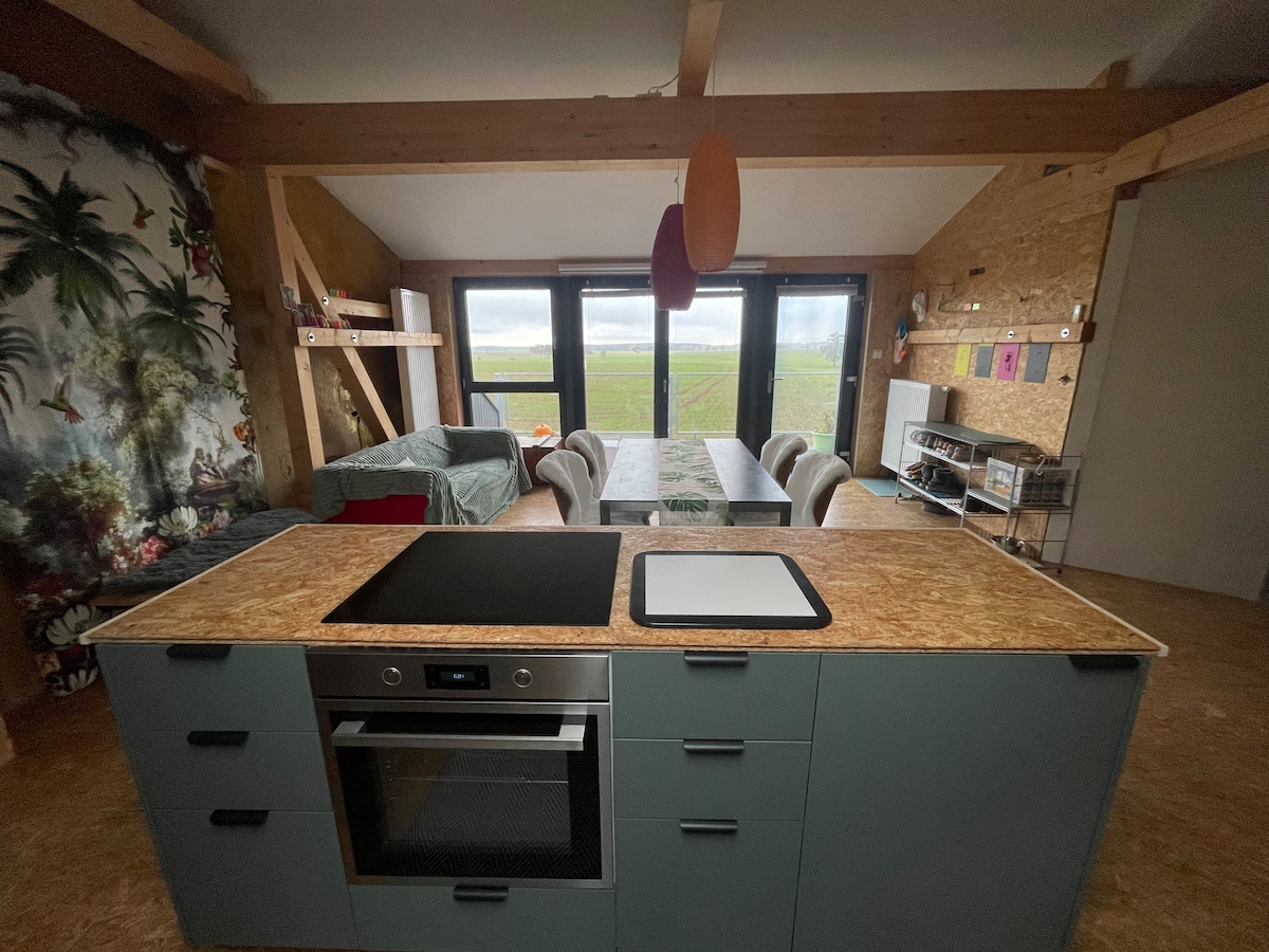 客用公寓位於我們房屋的全新改建閣樓。它包括帶廚房的起居區、2 間臥室和一間大浴室。最近的超市距離不到1公里,步行2分鐘即可抵達麵包店。如有需要,星期六可提供麵包服務。 Riesa 位於萊比錫和德累斯頓市之間,就在美麗的易北河畔。易北河自行車道距離約 3 公里。