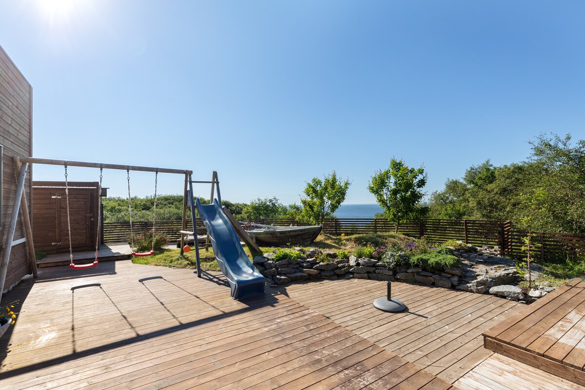 日常生活中休息?體驗美麗的日落,近在咫尺! 小木屋位於死胡同的末端,位置無遮蔽,可欣賞全景。 現代設計。只有您和自然景觀。 釣魚、皮劃艇、立式槳板和海灘生活的絕佳起點。 豐富的野生動物,可以看到可以慢慢翱翔經過的海鷹。 大花園,配有草坪、大露臺。 整天陽光明媚。長凳和桌子,讓每個人聚集在一起享用美食。 製作義大利美食的披薩烤箱。 我們很樂意與您分享食譜!: -)
