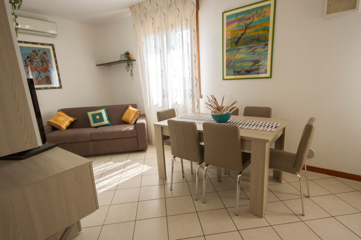 Rilassati in questa villetta tranquilla e riservata in posizione centrale a 3 minuti a piedi dal mare. Appartamento rinnovato e rimodernato 2020 situato al piano terra con ampio porticato fruibile come zona pranzo. 2 stanze da letto e una spaziosa zona giorno con cucina attrezzata. Giardino con posto auto privato. Puoi raggiungere a piedi la spiaggia e la via principale dove troverai negozi, ristoranti e fermate del bus per Venezia e dintorni.