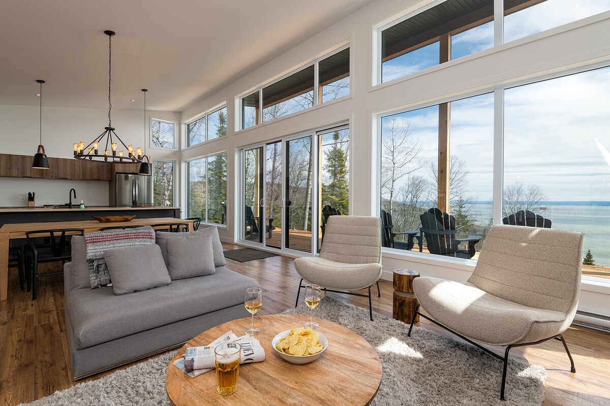 Experience 7 years of Superhost excellence in this modern Charlevoix haven. Perched on a mountain, our Zen retreat features forest-level windows and high-speed Fiber Optic internet. Just 10m from the top of Le Massif, 15m from the bistros and galleries of Baie-St-Paul and 1h from Quebec City. Enjoy "Northern Coziness" in a spacious living area designed for quality time. Ideal for quiet escapes; no parties or events. Your mountainside sanctuary for relaxation and exploration awaits. CITQ #298792