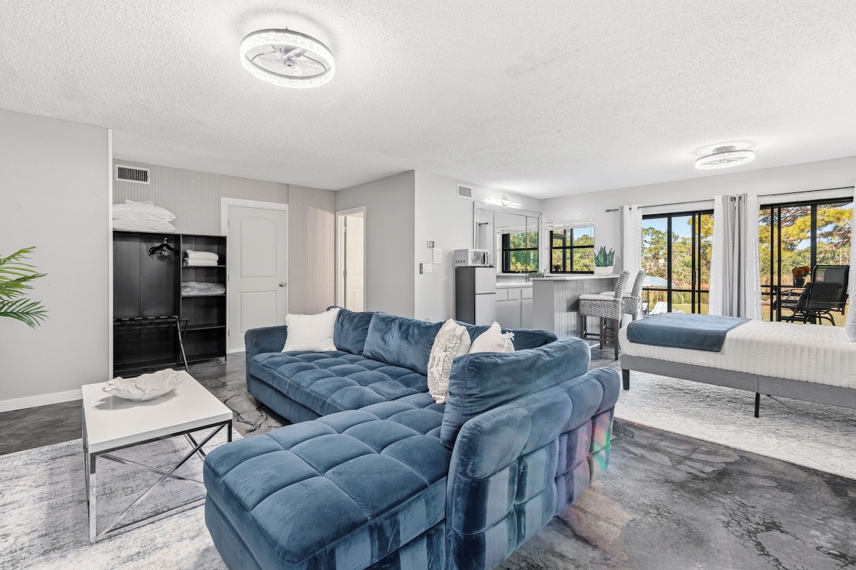 歡迎來到Paradise Palms。這間二樓一房公寓經過全面翻新,配備全新家具、大型私人露臺和按摩浴池、配有加大雙人床的臥室、客廳配有標準雙人床尺寸的沙發床、洗衣房、高速WiFi、全新電器、充足的衣櫃、智慧電視和音樂區。 走出門即可抵達半私人海灘,以及一個安靜的單戶家庭社區。 也有海灣通道,可租用皮艇。這是二樓單位,下面還有另一個單位。