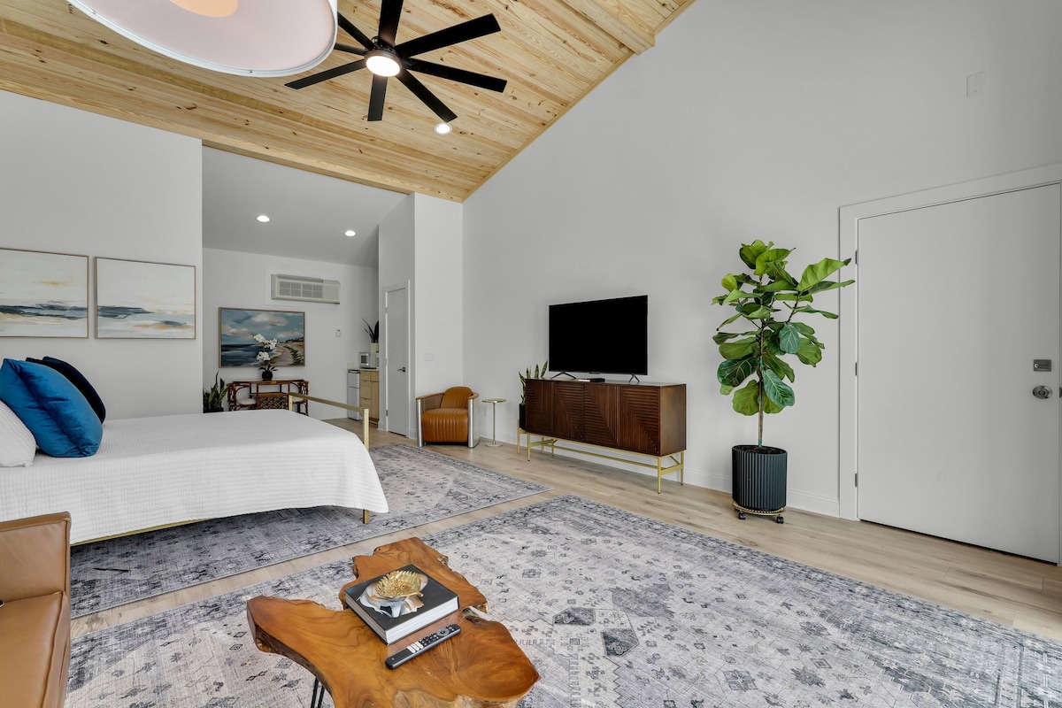 威爾明頓島上的寧靜樹屋。loft39是一間單臥室單間公寓,是遠離薩凡納市中心區域的時尚度假勝地。在寬敞的私人公寓中,在樹冠下放鬆身心,配有豪華竹床上用品的加大雙人床、高速WiFi、2臺智慧電視、專用工作空間、設備齊全的廚房、配有酒吧設施、配有超大淋浴間的全瓷磚浴室、獨立的起居和用餐區域以及海灘用品!包括私人街邊停車位。 執照號碼:OTC-023656