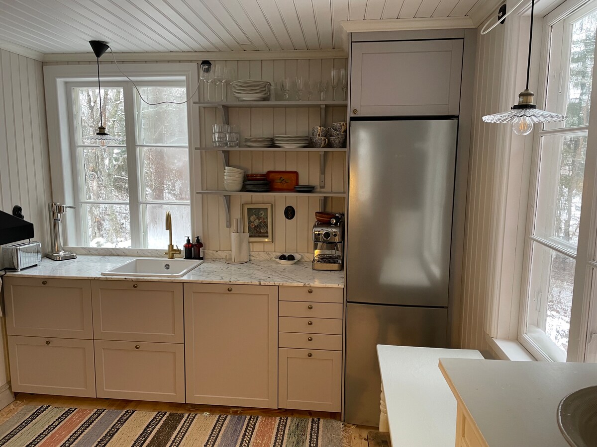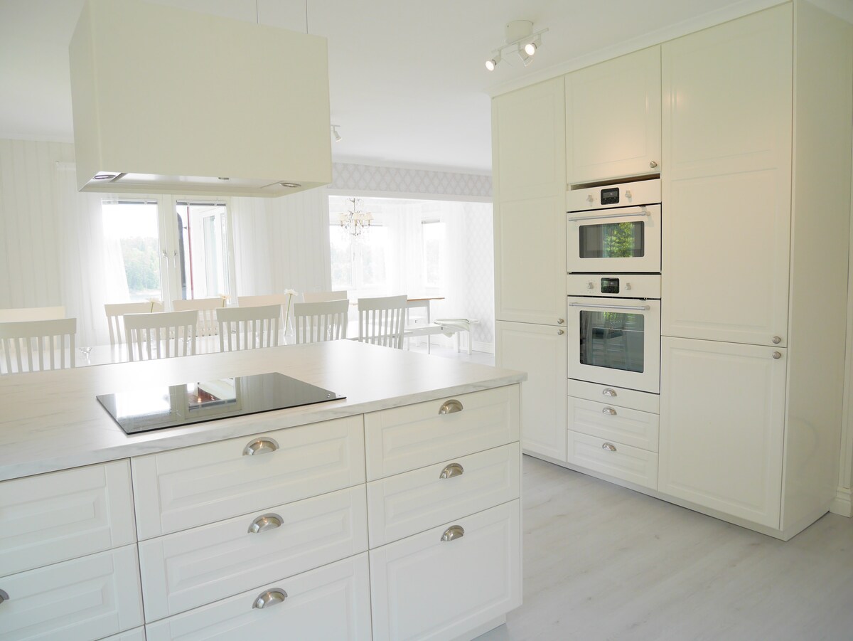 -Skärgårdsvilla從1922年開始,坐落在水邊的迷人環境中。 -日落時分遊泳的按摩浴缸, -從早到晚的陽光和300平方米的日光甲板。 -美麗的湖畔小木屋,配有大雙人牀。 -屋頂下有一個可愛的休息室環境,有戶外廚房和燒烤。 -湖邊的碼頭非常適合在湖中遊泳和早晨喝咖啡,開始新的一天 如果您想在水上外出,可提供-2艘皮劃艇、劃船和立式槳板。 -高速WiFi和65英吋LED電視,配有大型電視套裝。 花園裡有400年歷史的橡木