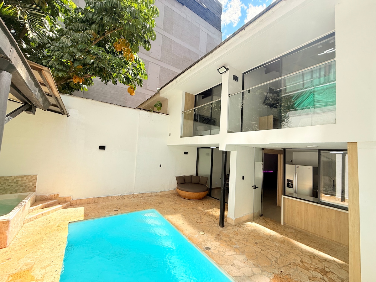 令人難以置信的中心和優雅的6床/7浴室房屋,配有溫水巴厘島風格的泳池、瀑布、撞球桌。在波布拉多的普羅文薩。步行即可抵達大多數餐廳、酒吧、商店和Parque Lleras。最多可入住12位房客。 我們的巴厘島風格房源提供6間臥室,每間臥室均配有獨立衛浴、空調、32吋智慧電視和保險箱。溫水泳池,附設瀑布,起居區域,附設55吋智慧電視和音響系統。設備齊全的廚房和餐桌。快速WiFi。 大廳24小時禮賓專員