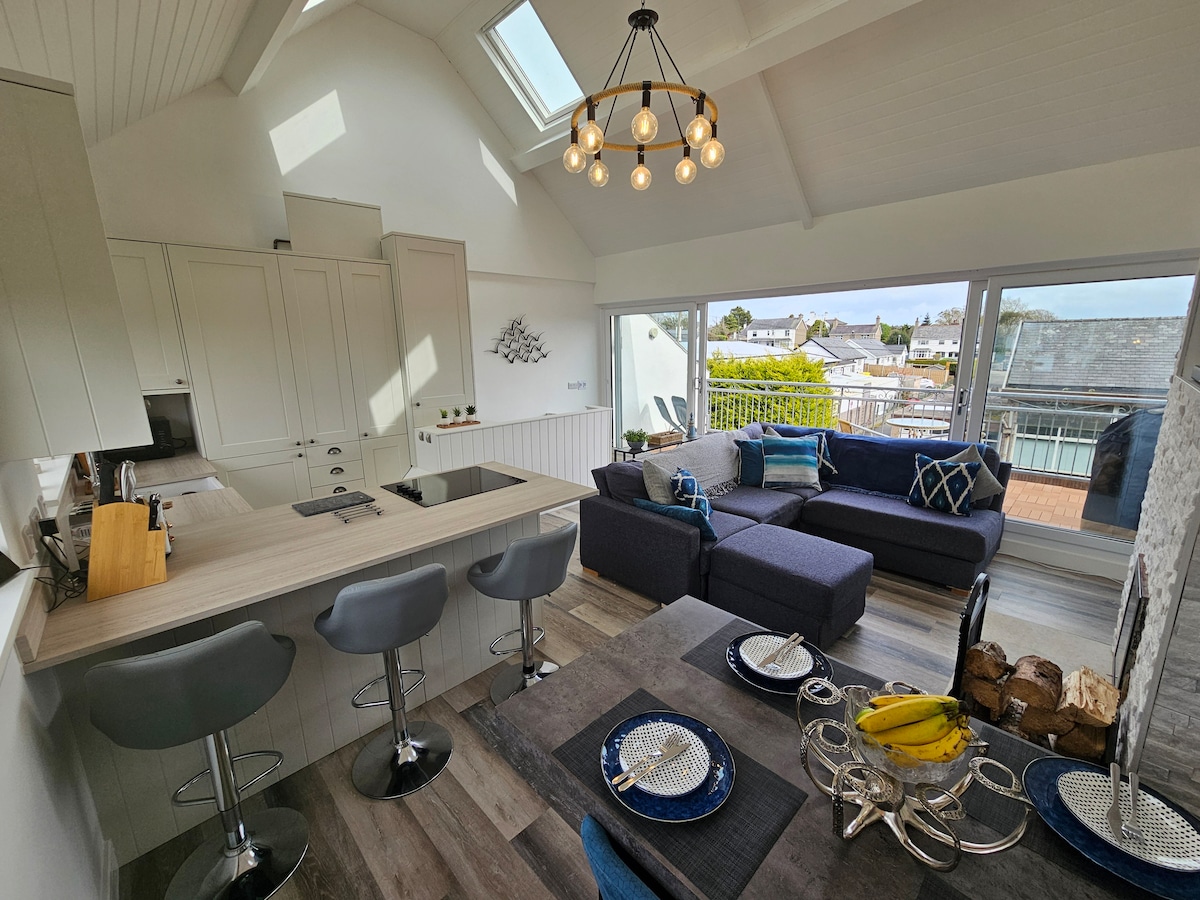 Perched on the edge of Llanbedrog, this light filled holiday apartment enjoys fabulous uninterrupted views of the countryside and the clear seas of Abersoch Bay and its two islands. A short drive (walk) to the seaside village of Abersoch. Our South facing self-contained apartment is the perfect getaway for couples seeking relaxation, sea air and stunning scenery. Adjoining owners’ home but is completely private, with your own entrance and outdoor space.
