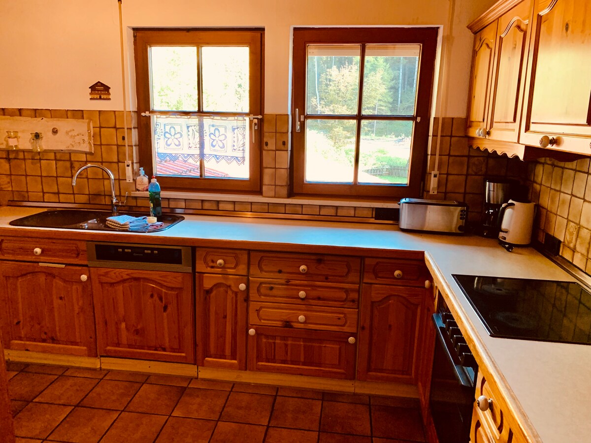我們將我們美麗的“森林小屋”出租給自然愛好者和家庭社區。在這片田園詩般的大片土地上,您可以欣賞森林全景,享受大自然。步行道就從家門口開始。小溪就在幾公尺外。因此,在花園中可以聽到浪漫、放鬆的噪音和水花聲。桑拿房邀請您放鬆身心,但也為小朋友提供了一些東西......包括帶滑梯、鞦韆和彈簧床的攀爬架;)