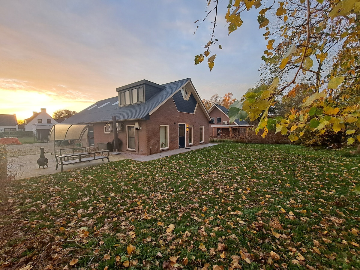 帶溫水泳池的4人客房舒適奢華,位於我們的老農舍( 1890年)的院子裡,非常安靜。 它毗鄰美麗的樹木繁茂的Verwolde莊園。 在綠色Achterhoek的美景中,這裡是美麗的徒步和騎自行車之旅的理想基地,參觀美麗的漢薩古城Deventer和Zutphen。