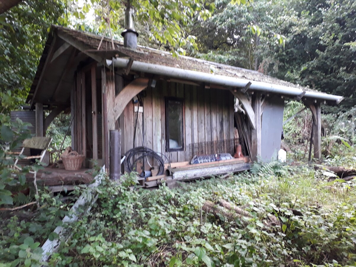 木屋度假屋位於Merriott House森林花園的林區。非常私密安靜。 鳥鳴聲。安靜。露天廚房。簡單而充足。花園對面有獨立浴室,配有淋浴間和馬桶,供小屋居民獨自使用。提供洗衣機。臥室有電力。Robs的雞住在小木屋附近。請確保訪客的狗狗受到控制。房客可在主屋使用我們的鋼琴