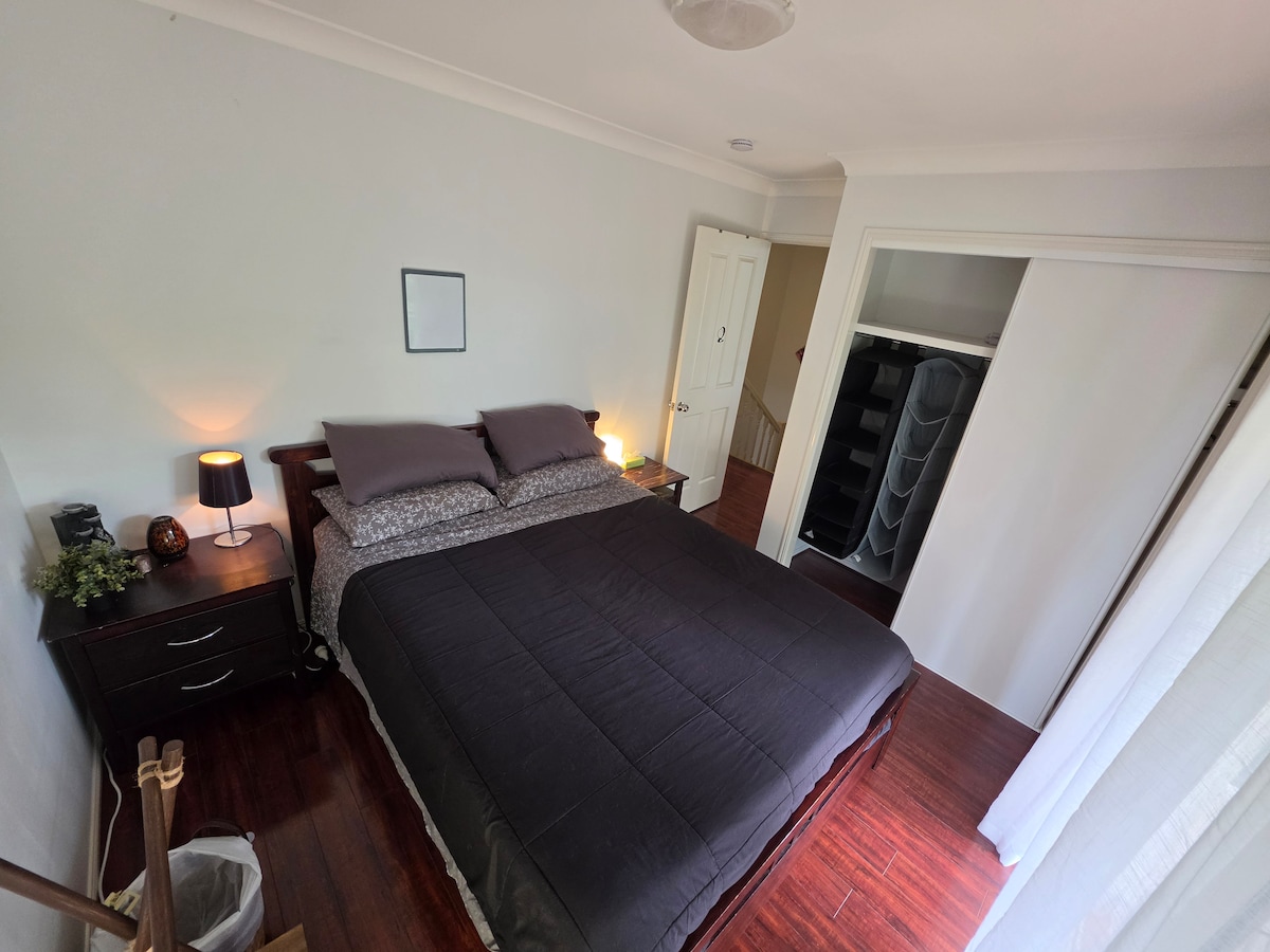 Welcome! My home is a cozy three-bedroom townhouse, perfect for single guests. I stay in the main bedroom with an ensuite, while the other two rooms are for guests. Each guest room has a comfy double bed, AirCon, a study desk, and a wardrobe. You’ll have access to a spacious shared bathroom, an extra toilet downstairs, kitchen and living room. Wi-Fi and Netflix are also available. The location is great — just a short walk to shops, schools, parks, restaurants, and bus stops to and from the city.