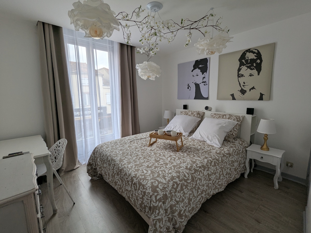Popcorn –距離Châteaucreux火車站5分鐘路程,安靜明亮的公寓,有一間臥室,非常適合商務差旅或情侶入住。 快速WiFi、工作空間、設備齊全的廚房、洗衣機烘乾機、配備Bose喇叭的投影機,並可使用Netflix和Disney +。 一個功能性和舒適的工作、放鬆和休息的地方。