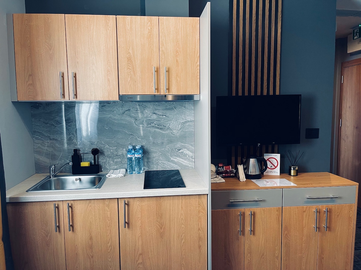 入住位於普里什蒂納 (Lakrishte) 市中心的奢華舒適公寓,這裡是這座城市最受歡迎的地點之一。 步行即可抵達所有地方:一流的咖啡館、餐廳和夜生活場所。 這個現代化的空間提供明亮的臥室、設備齊全的廚房、優雅的浴室、智慧電視、高速 WiFi,以及可欣賞城市景觀的獨立陽台。 非常適合情侶和時尚的城市住宿。