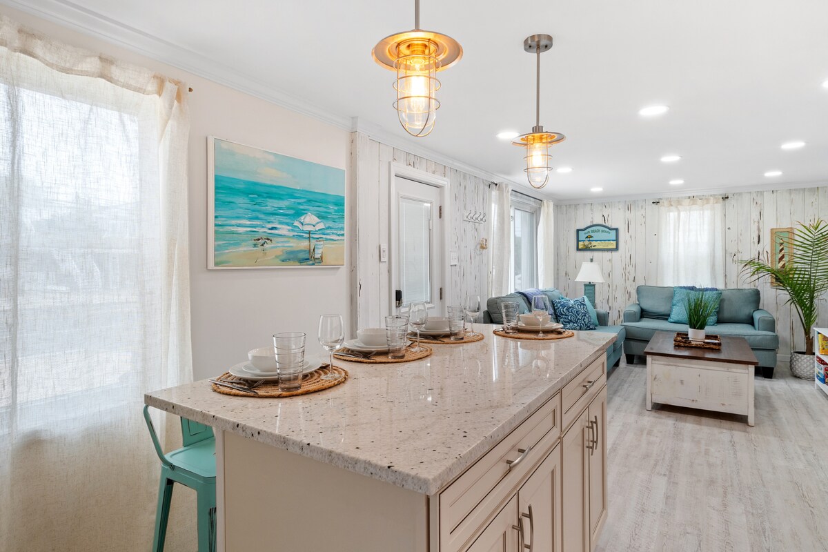 裝修精美的Ship Bottom公寓——現代化且乾淨,有2間臥室、寬敞的閣樓和獨立露台。 室內外最多可供 8 人用餐。 距離海灣和海洋只有兩個街區的距離。 步行即可抵達酒吧、餐廳、公園、婚禮場地、咖啡廳和商店。 距離「The Local」市場僅一箭之遙…… 租賃內容包括 4 個海灘徽章、4 張海灘椅、3 輛自行車、大型海灘冰箱和一把海灘傘。