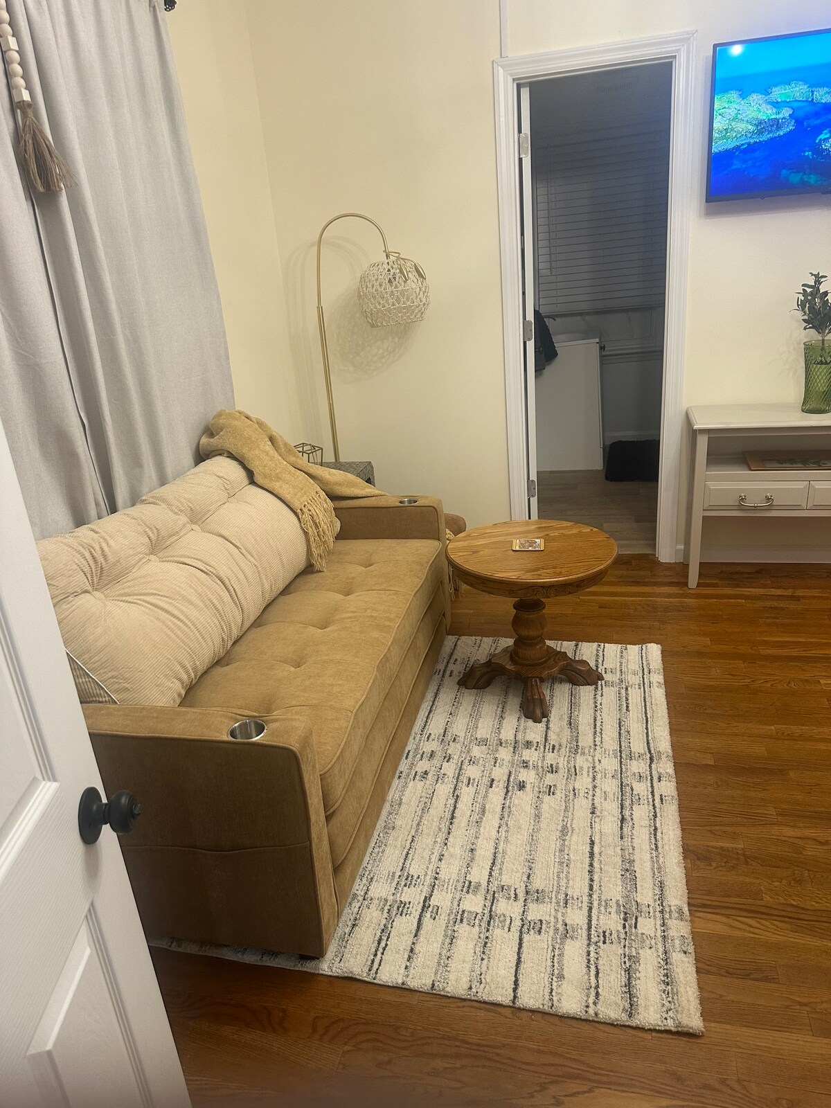 祝您在這個私密、乾淨和舒適的環境中住宿愉快。空間提供一間配有加大雙人床和辦公桌的臥室,可供在家工作。客廳配有智慧電視和組合沙發。釋放你內心的廚師!可使用廚房用具、餐具和鍋具/平底鍋。建築物內免費停車。位置方便,附近有許多必需品(商場/加油站/餐廳)。我們距離I-495 2分鐘,距離麥克阿瑟機場15分鐘。非常適合探望在傑佛遜港、帕特霍格等地的家人!