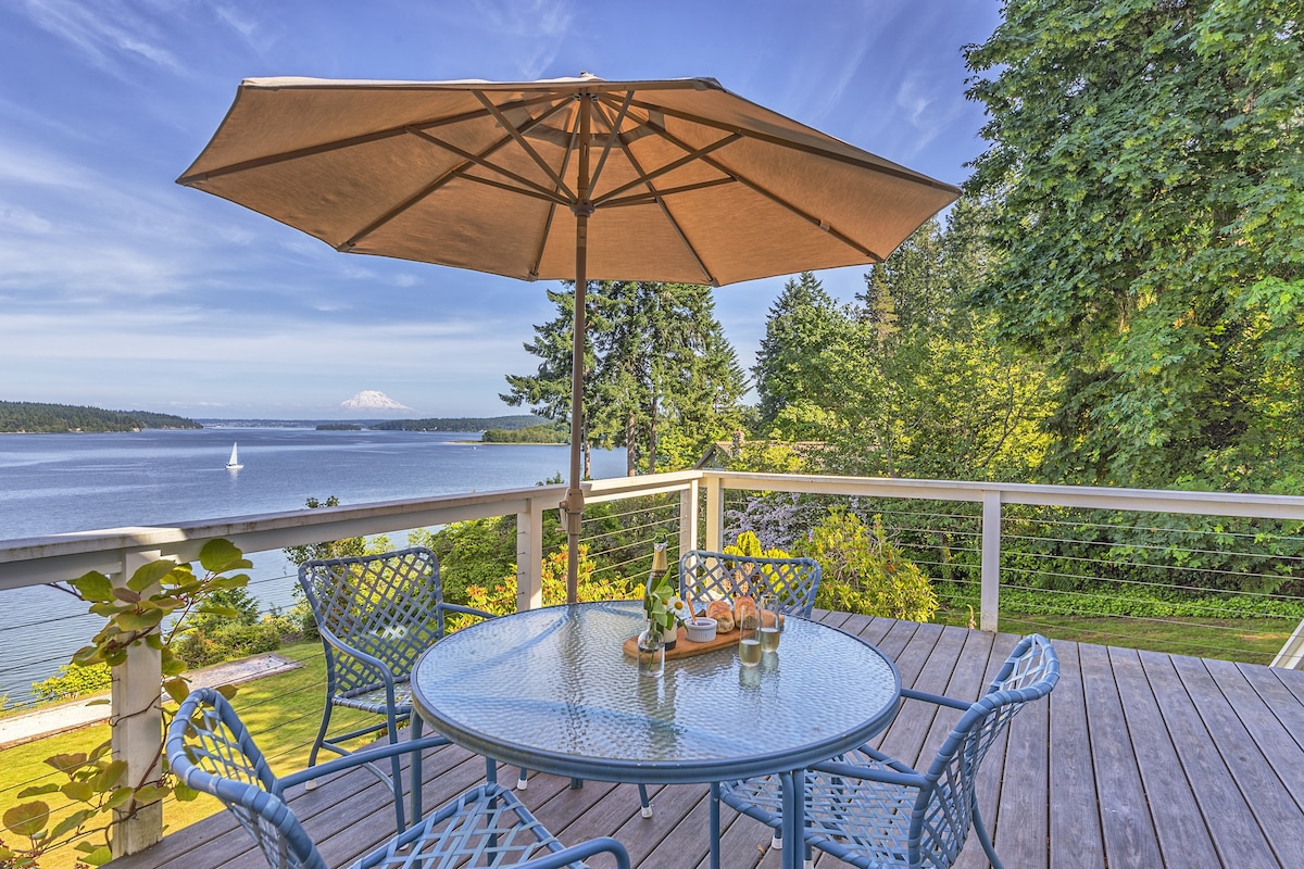 Escape to the serene community of Home, WA, nestled on the picturesque Key Peninsula. This remote getaway offers BREATHTAKING views of Mt. Rainier & Puget Sound from the spacious deck. Relax in the hot tub, play card games around the fire pit, or run & play on the sprawling one-acre lot. It's the perfect place to unplug, recharge, and reconnect with loved ones. ✦ Seattle: 1 hr ✦ Tacoma: 40 mins ✦ SeaTac Airport: 55 mins ✦ Penrose State Park: 7 mins Book now for a memorable getaway!