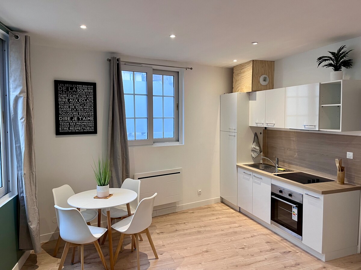 Studio apt in a fully renovated building (5 flats). - Beautiful town, quiet and safe - 15 mn's drive from Charles de Gaulle airport (no plane noise) - 22 mn by bus (bus 701) - Close to old church (no bell noise) and city centre shops I just bought and renovated the whole building and the flats in it. Only short-term rental. 30 days maximum via the Airbnb platform.