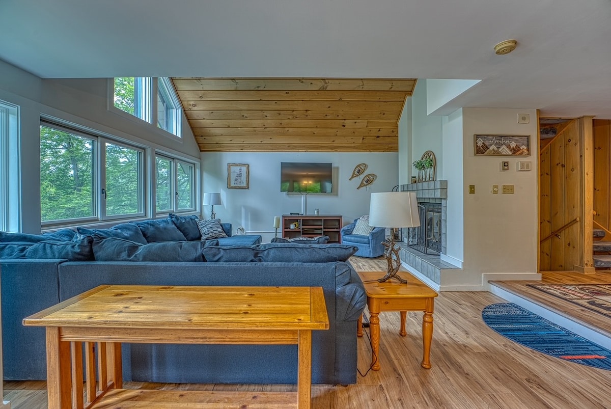 山間度假勝地! Loon Mountain House坐落在白山國家森林公園內,我們的5間臥室( 9張床)、3.5間浴室時尚的家,可欣賞迷人的山景。 享受拱頂天花板、寬敞的起居/睡眠區域、室內燃氣壁爐、巨大的後甲板和配有熱水浴缸和桑拿的低層娛樂室。 距離Loon 's base lodge and Adventure Center僅1英里。 在室內放鬆身心,或出門享受美麗的戶外! 林肯有很多好玩的地方。