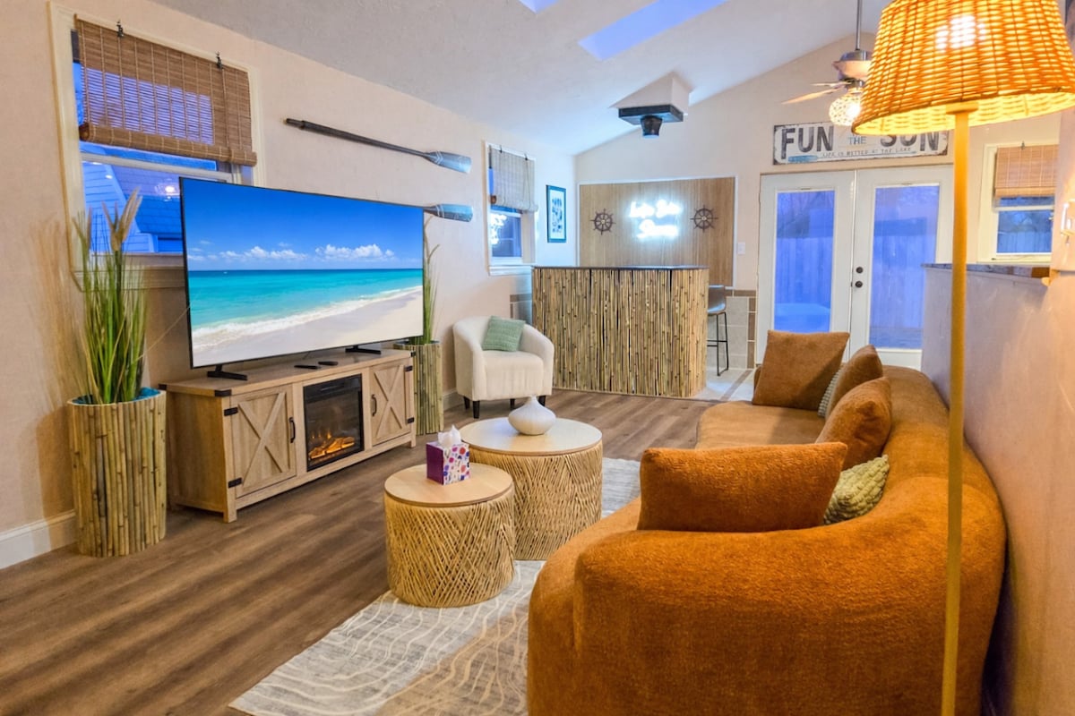 這個全新翻修和設計精良的房源會讓您覺得自己從未離開過。 在開放式客廳/用餐區域享受彼此的陪伴。大廚房可供您快速享用美食或享用全餐。 樓上的3間臥室都有自己的Roku電視。下層可通往後院和露臺,還有洗衣房、半浴室和額外起居區域(由於天花板較低,無法舒適地容納6英尺以上的人)。