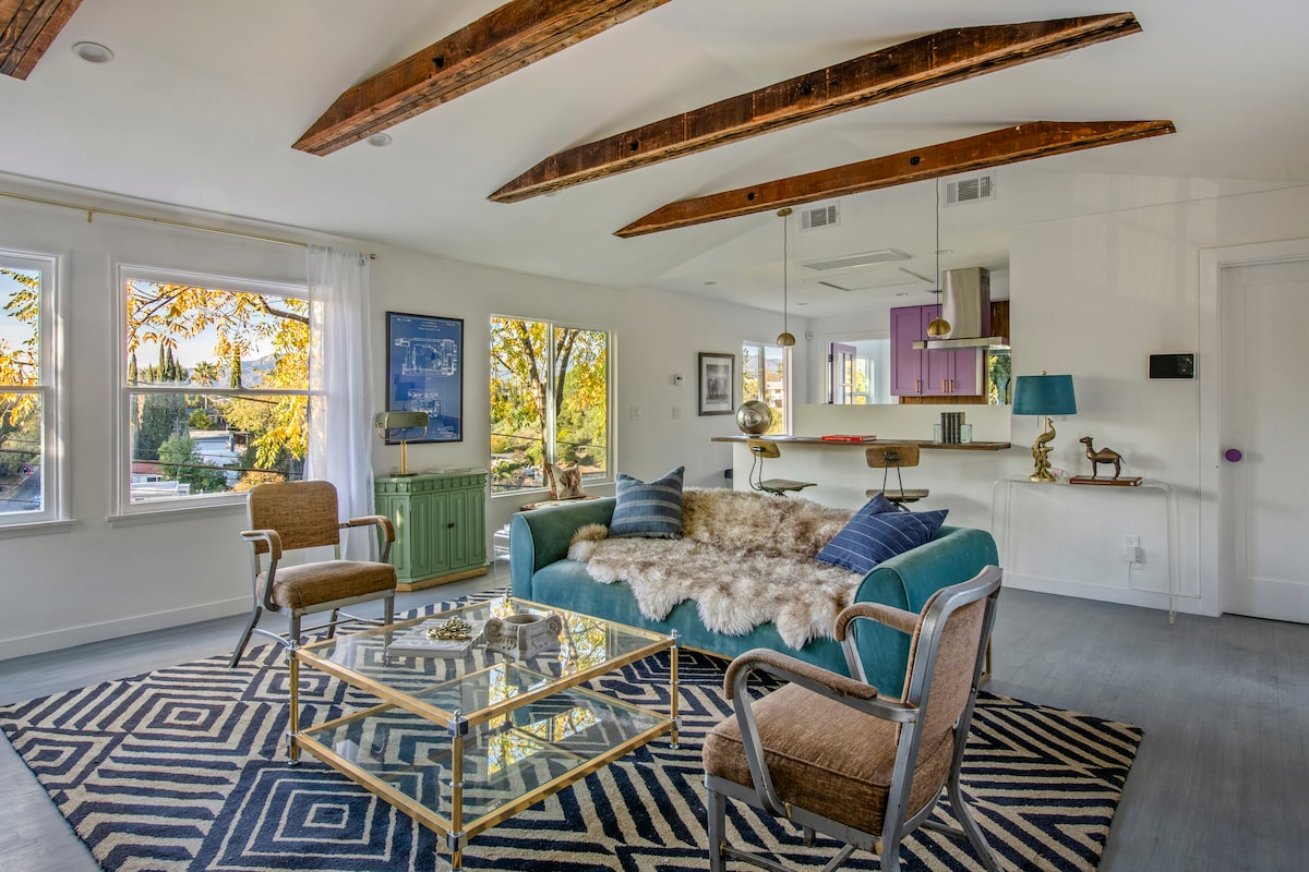 位於帕薩迪納和南帕薩迪納邊界的中世紀現代度假勝地。*時尚*舒適*位於市中心*寬敞*備有各式設備*每項設施都經過深思熟慮,每一刻都經過策劃,以復古和新現代的混合視覺來愉悅眼睛和靈魂。 靠近帕薩迪納舊城區、玫瑰碗、高地公園購物和餐廳、銀湖、洛杉磯市中心、諾頓西蒙博物館、歐西登學院、110和134高速公路。 玫瑰遊行花車會經過我們的街道!