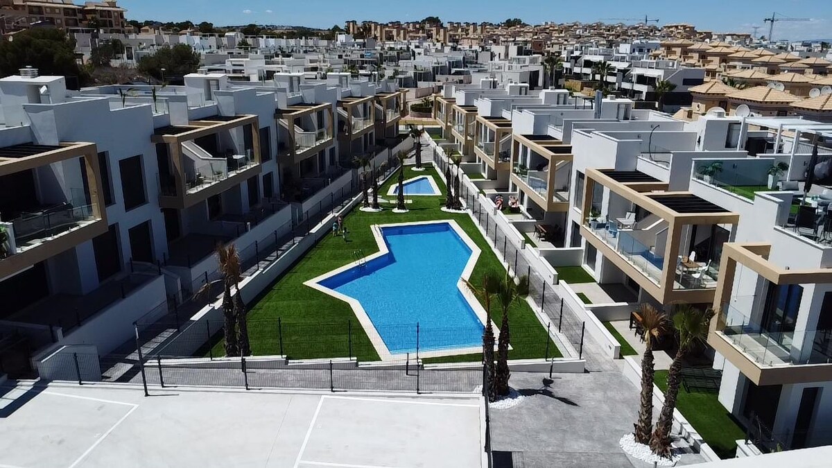 享受我們位於Villamartin的全新寬敞現代轉角公寓「Casa del Sol Villamartin」。 適合6人入住,有3間臥室和2間浴室。公寓擁有開放式的起居廚房、大型兒童友好露臺、庭院和花園。 您還可以使用公共泳池。靠近各種海灘、美麗的城市和著名的高爾夫球場。非常適合家庭和朋友入住。 立即預訂,享受舒適放鬆的假期!
