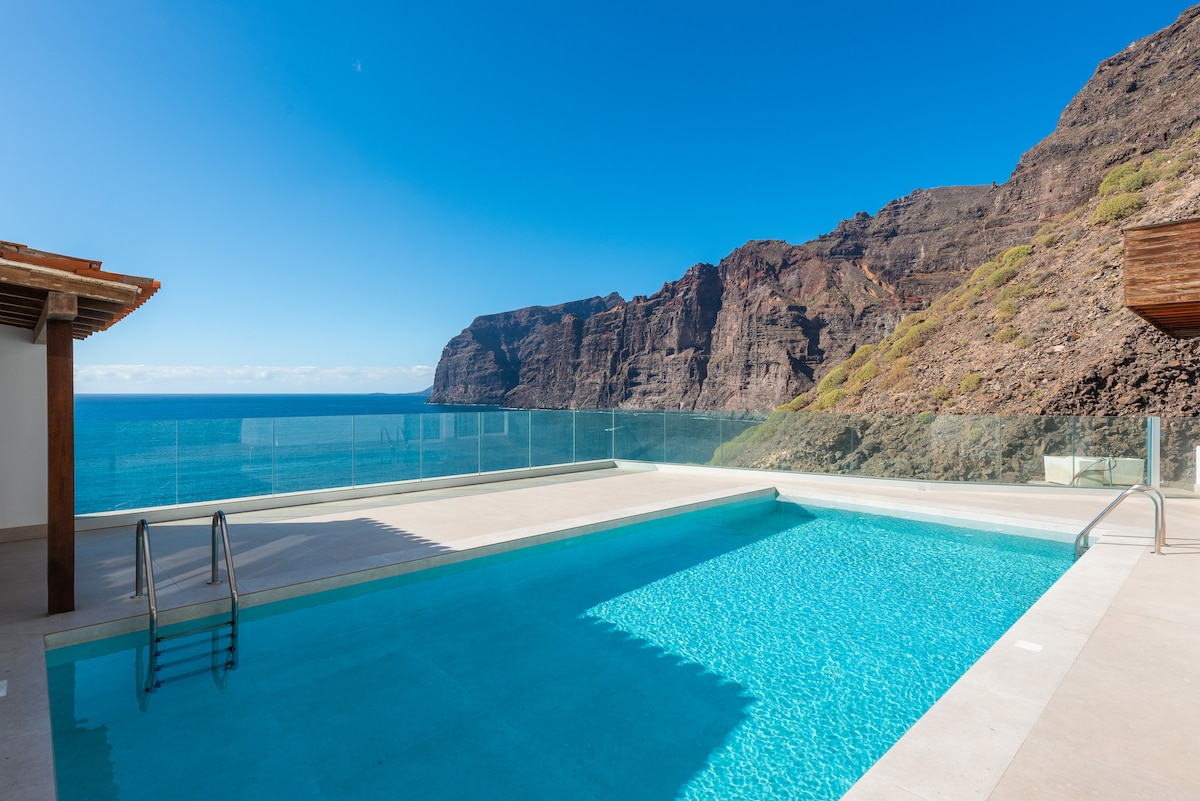 位於Los Gigantes的Crystal I豪華公寓。 時尚公寓(109 平方公尺),配有 142 平方公尺露臺、溫水私人泳池和海景、La Gomera 和 Los Gigantes 洋崖全景。2 間帶套房浴室的臥室、寬敞的起居區、開放式廚房、所有房間配有空調、高速 Wi-Fi、洗衣機/烘乾機和地下私人停車場。