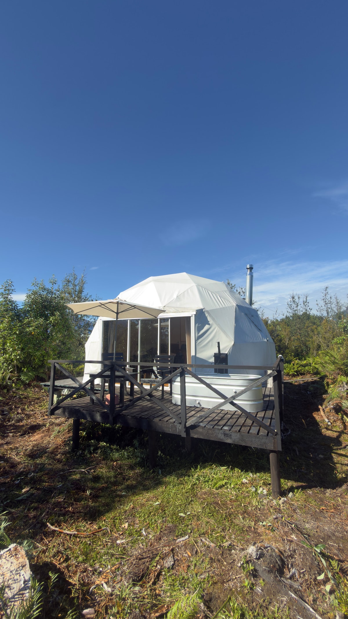 在這次難忘的假期中與大自然連結。體驗入住圓頂屋,欣賞星空美景。由於我們的多雨氣候,您可以在室內強烈地感受到雨和風。了解我們弗魯蒂亞爾市的美妙環境,我們有火山、湖泊、美食、藝術和許多自然景觀供您選擇。我們在試運行中等待您的到來,我們仍在為此項目努力工作。 Ibaceta-Benn 家族