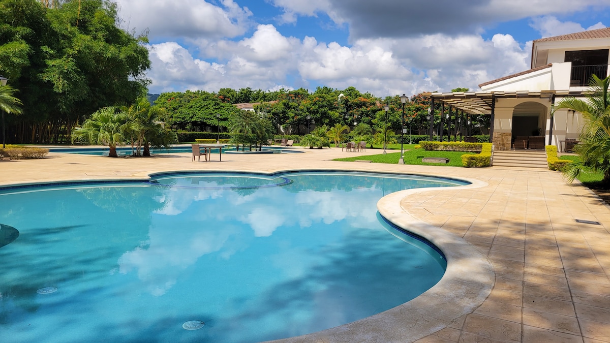 寧靜門禁社區🌿,適合家庭入住 🌿 在這個安靜舒適的房源中與親人放鬆身心,配有冷氣和熱水。 坐落在馬拿瓜最美麗的門禁社區之一。 這個迷人的度假勝地位於Carretera a Masaya和主要購物中心附近,位置方便,完美融合了寧靜和無障礙設施。 獨享設有門禁的社區泳池和俱樂部會所,非常適合晨間游泳或晚間聚會。
