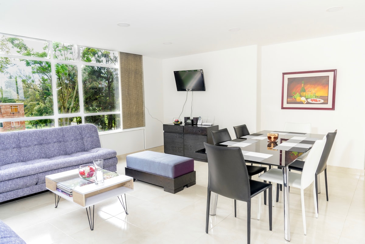 享受安靜的37公尺中央公寓,設施一應俱全,讓您在波哥大安靜入住。距離美國大使館、Corferias、AGORA會議中心、波哥大法院、司法部長辦公室、CAN、Gran Estación等地僅幾步之遙。距離El Dorado機場20分鐘,距離交通總站10分鐘。位於四樓。大樓有電梯。
