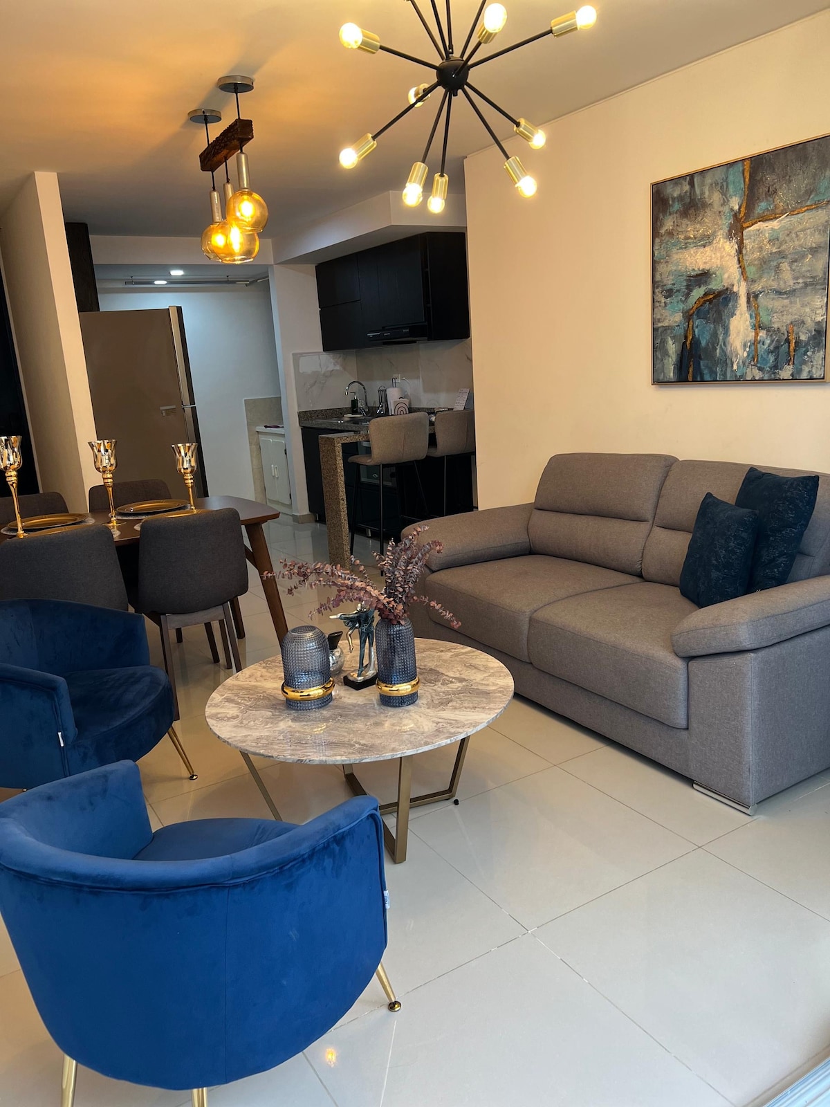 Disfruta de una gran experiencia tecnológica y elegante en este Apartamento inteligente, con una ubicación privilegiada, la cual está rodeada de tiendas éxito, D-1, Dolarcity, Makro, cerca puedes encontrar discotecas, Home Center, Centro Comercial Ventura Plaza Luces inteligentes, sistema Alexa con Amazon Music, cuenta con lavadora, secadora, todos los elementos de cocina y purificador de agua, 188 canales en cada televisor HBO - claro video, 04 Aires acondicionados 03 habitaciones y 01 sala