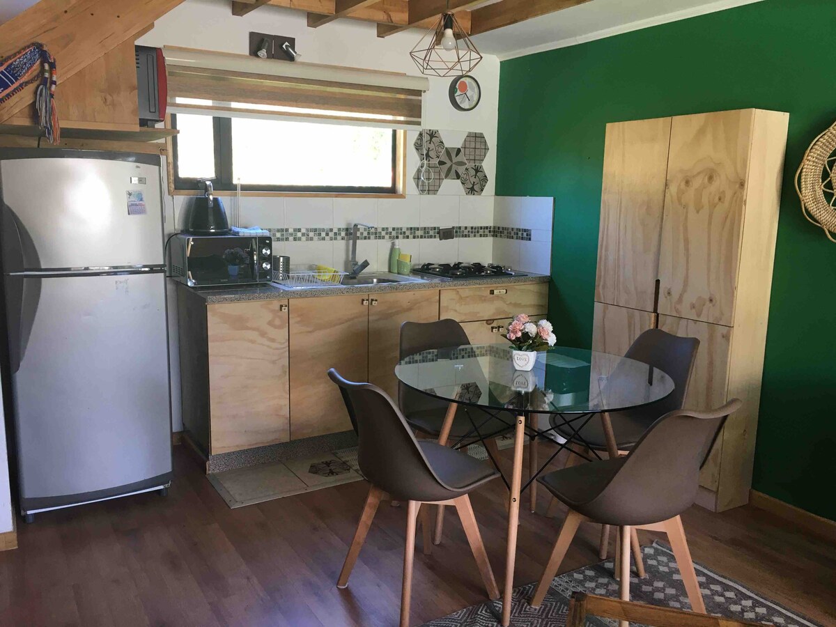 Cabaña ubicada en un campo en el Km 6 aprox de la ruta Vllca-Pucón, equipada para 4 huéspedes con sábanas, toallas, cocina con microondas, hervidor, refrigerador. Con combustión lenta, estufa eléctrica y calientacamas. Tv satelital Direct Tv. Tarifa incluye 1/2 saco de leña por estadía del 1 de mayo al 30 de agosto. Hot tubs en los jardines del recinto con costo extra de $45.000 por 4 horas de uso. Se debe coordinar con un día de anticipación la reserva del Hot Tubs para su preparación.