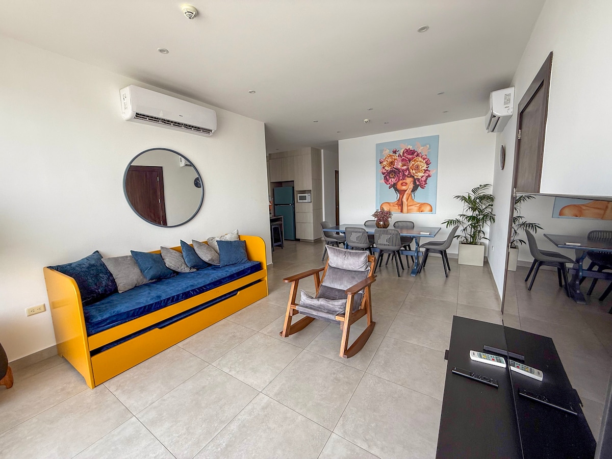 這個獨特的房源有自己的風格。 在這個安靜時尚的空間中放鬆身心。 在最佳住宅區度過獨一無二的假期,距離何塞·華金·德奧爾梅多國際機場( José Joaquín de Olmedo International Airport ) 10分鐘路程。 這是一個住宅區,位於La Puntilla最好的住宅區之一,距離UEES、Plaza Moderna和Samborondón路3公里的重要景點、Moderna Plaza和餐廳僅幾米之遙。