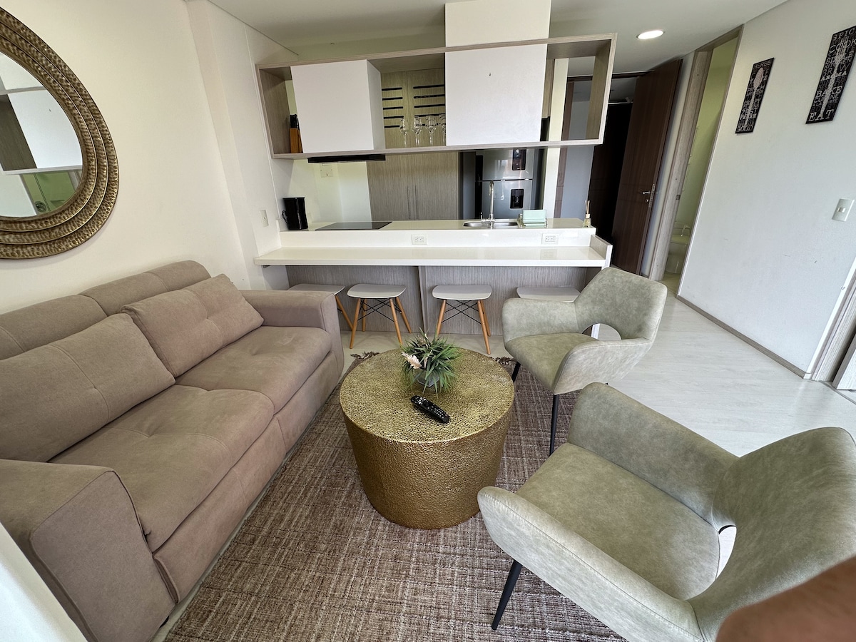 Porta Nova Suites - Just 5 minutes away from MDE Rionegro Airport. Our cozy 1-bedroom 2-bathroom apartment offers a king-sized bed, sofa bed, balcony with nature views, and easy access to Hospital San Vicente. Enjoy our building's amenities: Pool, Spa, Gym, Coworking Space, and TV room. With private garage parking and daily cleaning available, your comfort is our priority. Experience the perfect blend of convenience and relaxation in "your home away from home." Book your stay today!