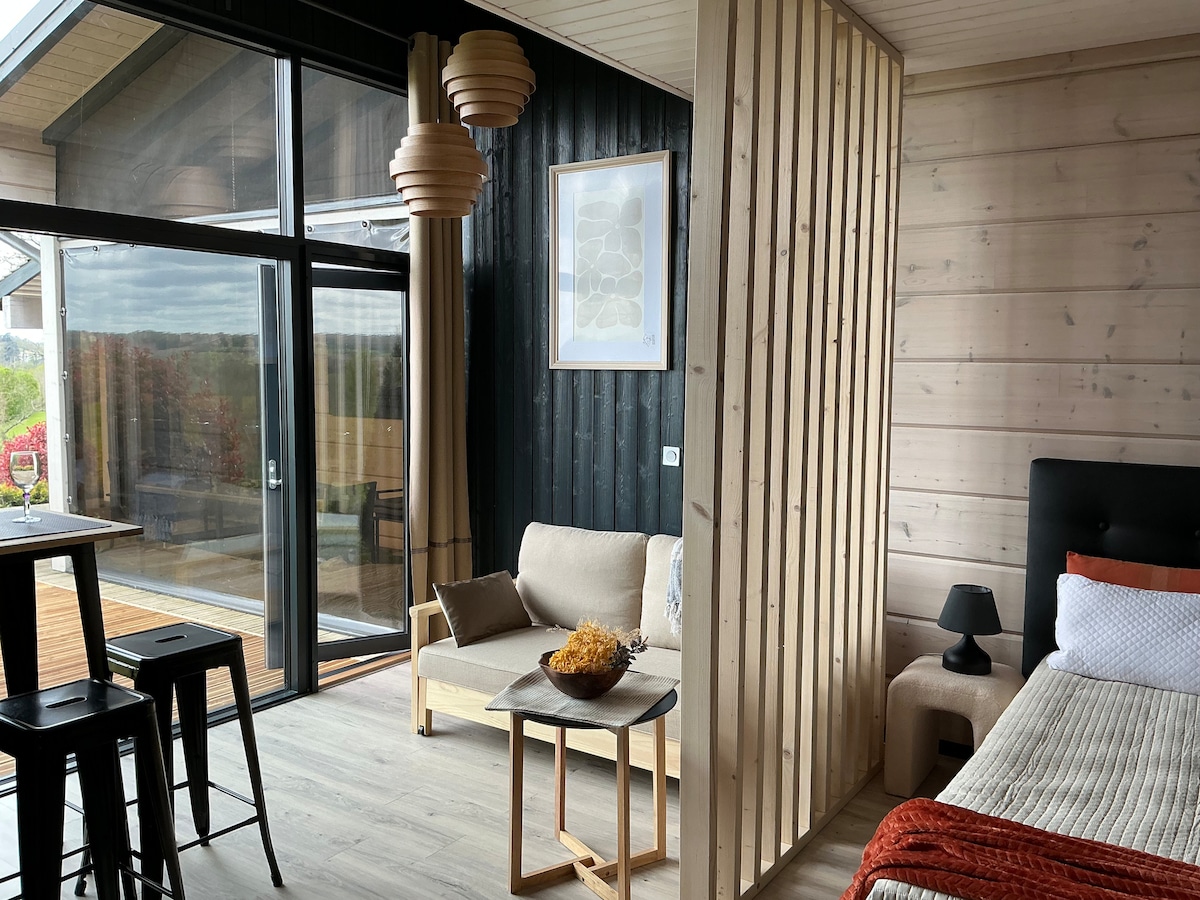 這間住宿位於一棟木造房屋內,有獨立入口,建築風格現代。這是一個獨特的機會,讓您在一個真正的芬蘭房屋中度過時光。這棟房子位於一個安靜的林區,開車 3 分鐘即可抵達村莊中心,該村莊建於 13 世紀,被列為法國最美麗的村莊之一。您可以向女主人(專業廚師)預訂早餐或晚餐。