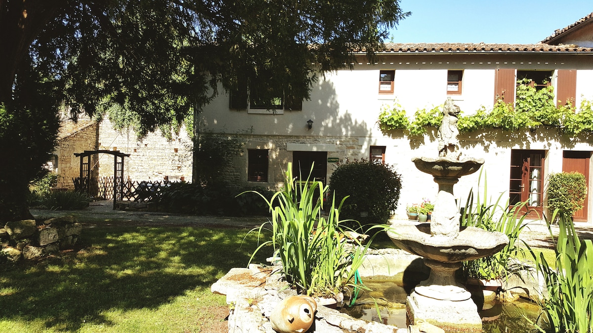 我歡迎您來到 La Ponne 旅館,這是一座 18 世紀的麵包店,用當地和天然材料(裸露的石頭、木材、大麻)修復,並精心裝飾。 在一個安靜而真實的環境中,它散發著溫馨、舒適和舒緩的氛圍,有利於您的健康。 它位於普瓦圖-夏朗德 (Poitou-Charentes) 的中心,全年開放,其優質服務適合度假、商務差旅或長期住宿。 我們會說英文!
