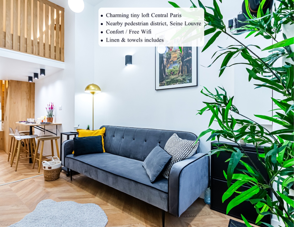 26 平方公尺的家庭單間公寓,距離羅浮宮 5 分鐘,非常適合歡迎來到巴黎蠶繭,距離羅浮宮 5 分鐘🖼️! 這間26平方公尺的單間公寓位於美麗的舊建築一樓(方便的樓梯,無電梯),最多可容納4人,配有2張真正的雙人床,其中一張位於閣樓。 您可以享用設備齊全的廚房、Wi-Fi、電視和帶淋浴的設計師浴室。 附近有咖啡廳和商店的熱鬧街區,✨非常適合家庭或好友(重新)探索巴黎。