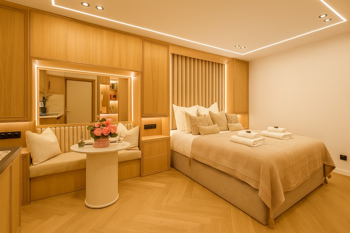 在我們的 40 平方公尺公寓中,您可以找到舒適的體驗,包括臥室、衛浴、舒適的客廳和設備齊全的廚房。配有時尚的沙發床,最多可供 4 位房客入住。這個空間非常適合度假,經過精心設計,讓您享受完美的住宿體驗。探索這座城市,或在這個迷人的度假勝地放鬆身心,讓您有家的感覺。