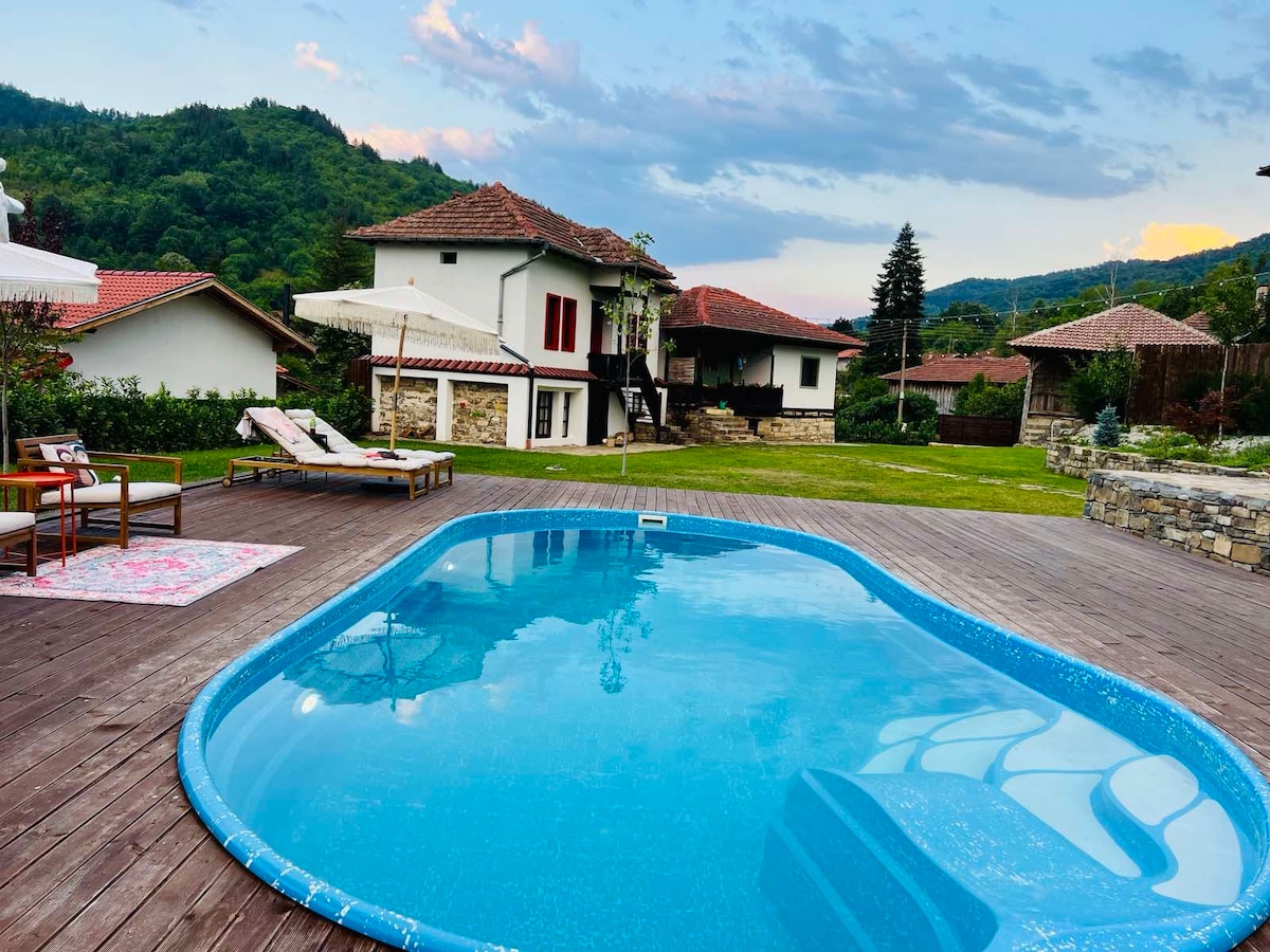 山景( Mountain View )靠近附近有適合家庭的活動、洞穴、修道院和村莊。 您一定會愛上我們的房源,因為戶外空間、放鬆的寧靜和大自然的美景享受泳池旁的燒烤和保加利亞鄉村的新鮮清潔空氣。 Mountain View Complex最多可容納12位房客。 但無論您的團體有多少人,這棟房子都是您的。 距離索非亞市中心80公裏。 距機場不到一小時。 祝您玩得開心。