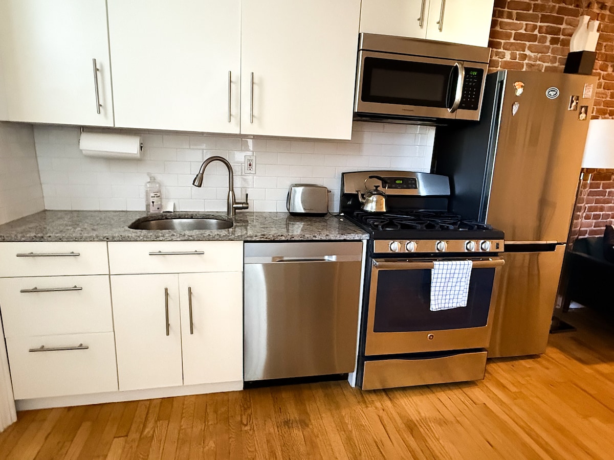 現代奢華和設計師的觸感,在歷史悠久的1880年代的棕色砂石建築中。 您會愛上外露的磚頭、令人驚嘆的廚房、配有加大雙人床的大臥室、定制衣櫃和水療式浴室。從我們家門口步行10英尺即可搭乘巴士,15分鐘即可抵達時代廣場。距離史蒂文斯和霍博肯著名的海濱僅3個街區。步行分數為97分!靠近霍博肯最好的餐廳、夜生活、渡輪和PATH。