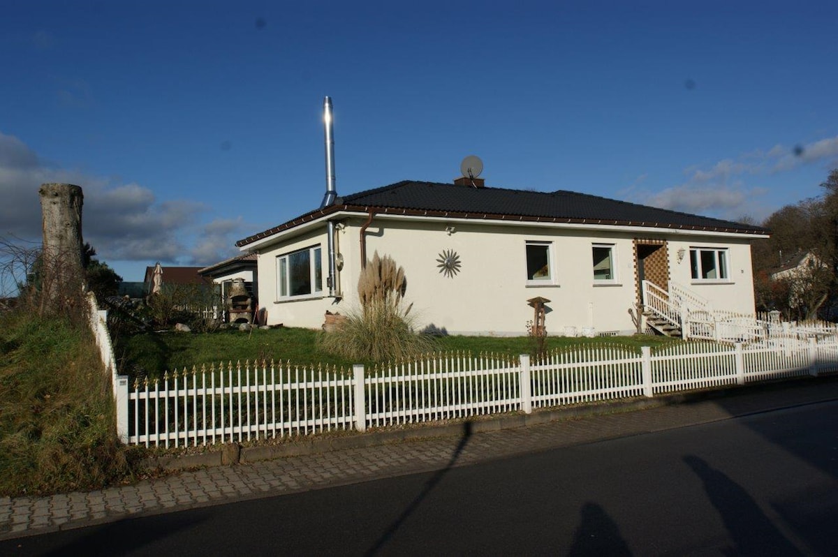 Besucht uns in unserem neu renovierten Ferienhaus auf dem über 1000 m² großen Grundstück mit direkt angrenzendem Bachlauf, überdachtem Balkon und großem Gartenbereich! Das 50 qm große Holzhaus befindet sich in ruhiger Lage am Ortsrand und wurde mit viel Liebe zum Detail aus seinem Dornröschenschlaf erweckt. Unser kleiner Rückzugsort wurde innen und außen grundlegend renoviert und neu eingerichtet. Nehmt euch eine Auszeit und ladet euren Akku bei gemütlichen Abenden am Kaminofen wieder auf :-)
