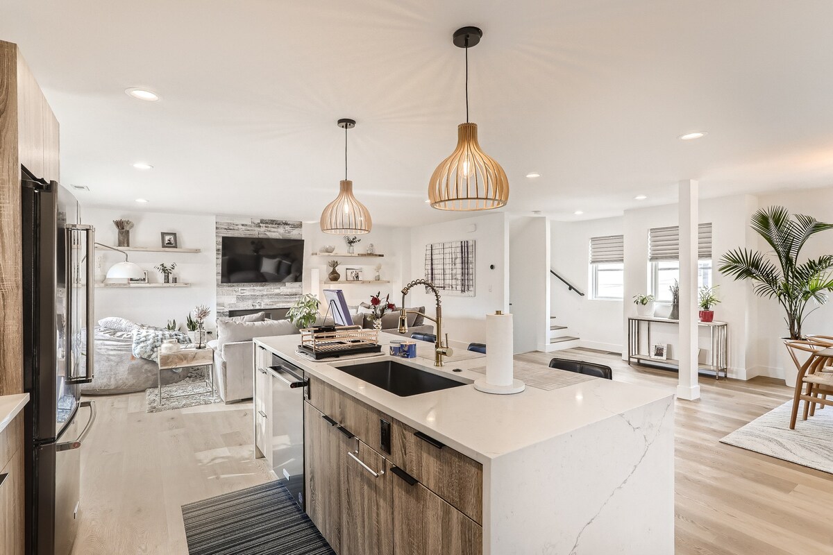 2022 年建造的全新聯排別墅!位於野馬體育場、LoHi、Cherry Creek Path、River Walk和Sloans Lake附近!靠近市中心的餐廳和酒吧,可直達Speer Blvd.和I-25。距離最近的全食超市(Whole Foods)開車 10 分鐘。現代設計,配有大型屋頂露台!靠近I-70,可前往山區。