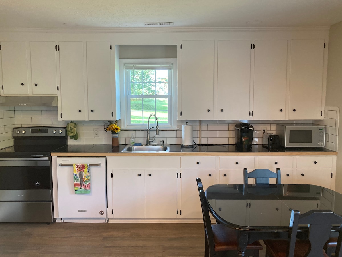 位於僻靜鄉村道路的全新翻修房源。 新廚房、浴室和露台。私人後院,配有露臺、烤架、室外桌子和瓦斯火坑。房子有平坦的車道,距離人行道一步之遙。一張加大雙人床和2張加大單人床,每位房客入住後都會清洗所有寢具。 臥室有遮光窗簾。 客廳配有300 Mbps WiFi和智慧電視。如果您與更大的團體一起旅行,請查看隔壁的Airbnb ( Maple Glen )。