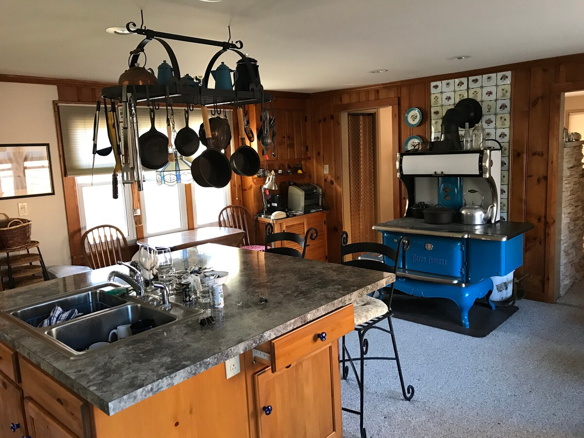 安靜的林間環境,正宗的圓木小屋: *獨立的林區。 屋主住在附近。冬季可見的其他房源。 *前往小木屋的途中,有1/2英里的鄉村泥土路經過房屋。請慢慢開車! *GPS 關閉後,沿路標誌。 *停車區域轉彎處。 *全套衛浴 *廚房:對流烤箱/空氣炸鍋/微波爐組合、Keurig、烤麵包機、檯下冰箱/小型冷凍庫。 *閣樓大雙人牀 *雙人日式牀墊 *鍋具、平底鍋、餐具 * 4人餐桌服務 *遊戲、書籍