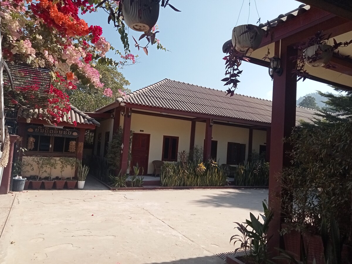 Marena Guesthouse offers a quiet and less expensive alternative to the busy, bustling city center of Luang Prabang. It is newly built and offers modern, clean rooms with free WiFi. All rooms have private outside entrances and patios that surround a beautiful courtyard and flower gardens where you chill out after a day of exploring. Please note we are located in a quiet neighborhood about 10 minutes from the city center so a motorbike is recommended which we also have available for rent.